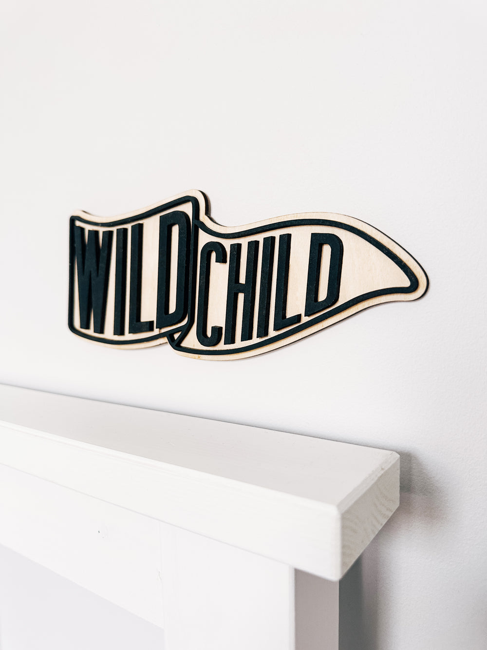 This pennant flag features the phrase 'wild child' and makes a great addition to your wall, perfect for your wild child's room!